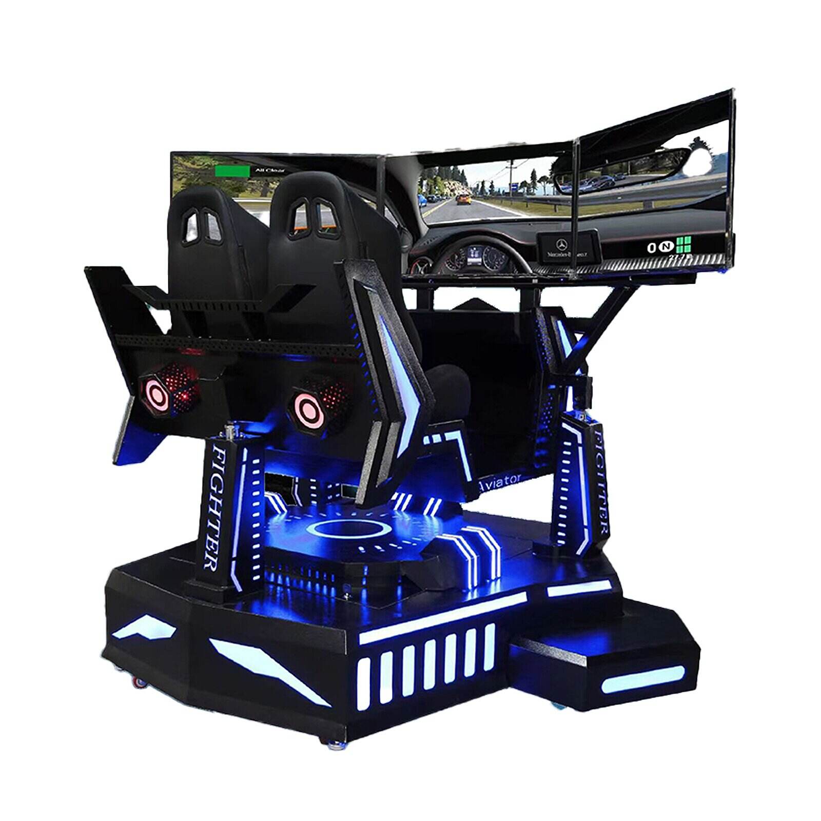 Elevate your entertainment venue with the racing simulator that offers unrivaled operational ease. The integrated triple-screen setup provides a spectacular visual experience without the maintenance and hygiene concerns of VR headsets. Its eye-catching design and intense motion experience draw crowds