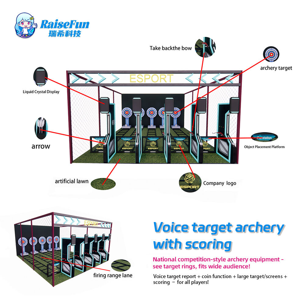 national competition-style archery equipment, featuring voice target reporting, coin function and large target screens, suitable for all age groups. Equipped with a bow return device, simulated targets and artificial lawn shooting lanes, it creates an immersive archery experience—ideal for interactive fun in playgrounds and business districts.