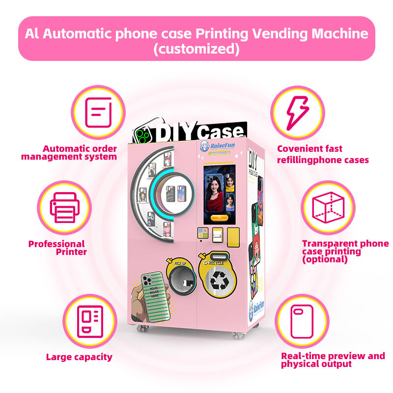 रेझफन एआय स्वयंचलित फोन कव्हर मुद्रण विक्री यंत्र उच्च-व्याख्या यूव्ही सानुकूलन खरेदीसाठी नाणे चालित गेम्स