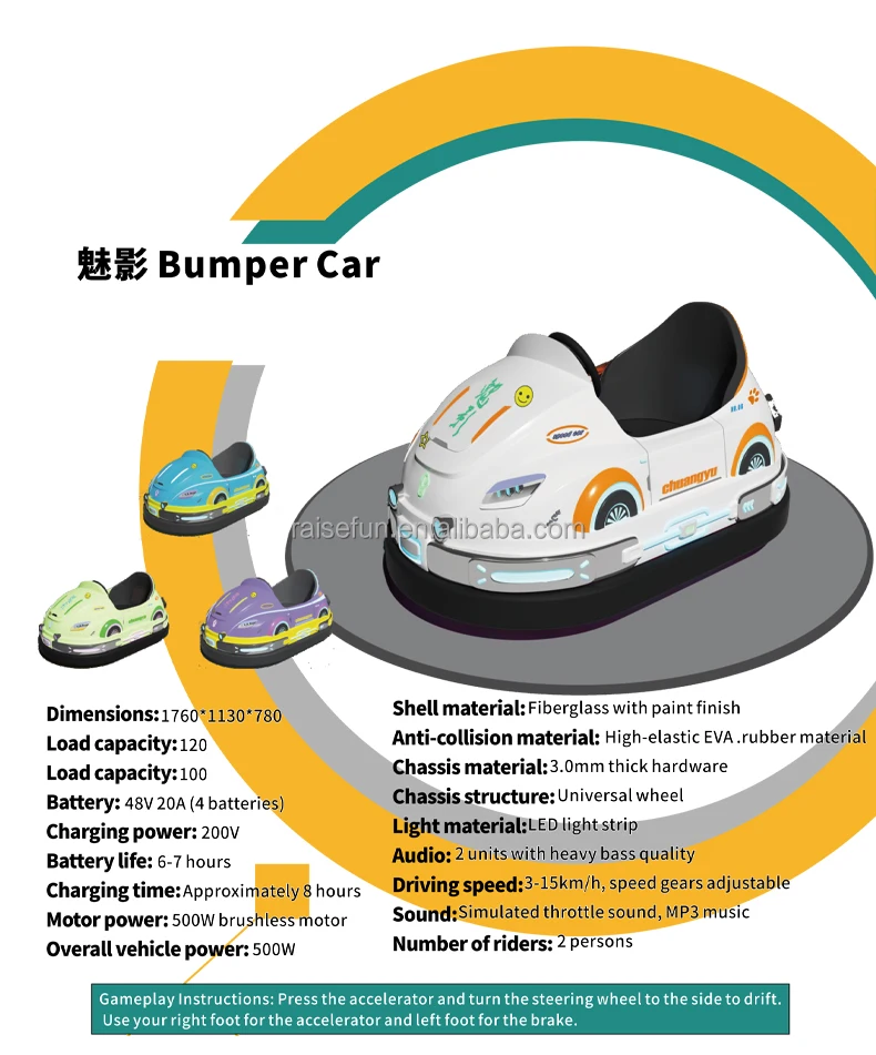 Offerta Telfa Bumper Car LED Illuminat, Batterija Operata Dodgem għall-Kids u Adults, Għajdien għal Playground Internu u Esternu