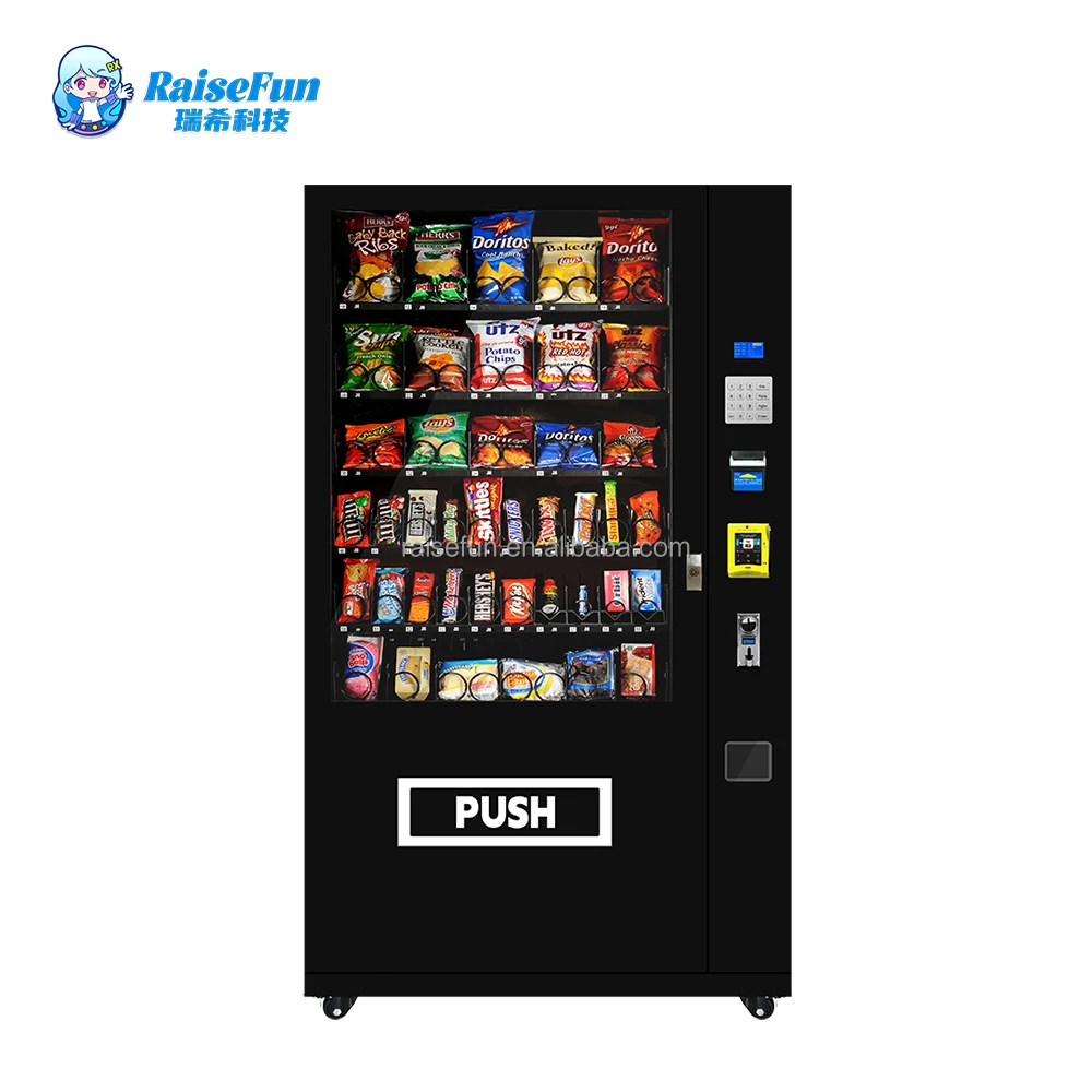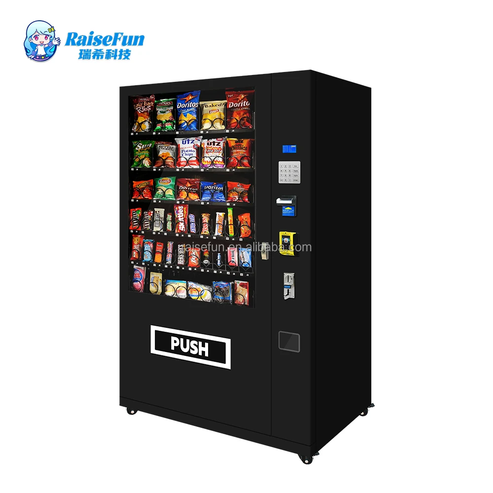 Slimme Drank- en Snackautomaat Snack en Drinkcombinatie Zelfbediening 24 Uur 60 Vakken Kleinschalig Scherm Metalen Toetsenbord Automaat