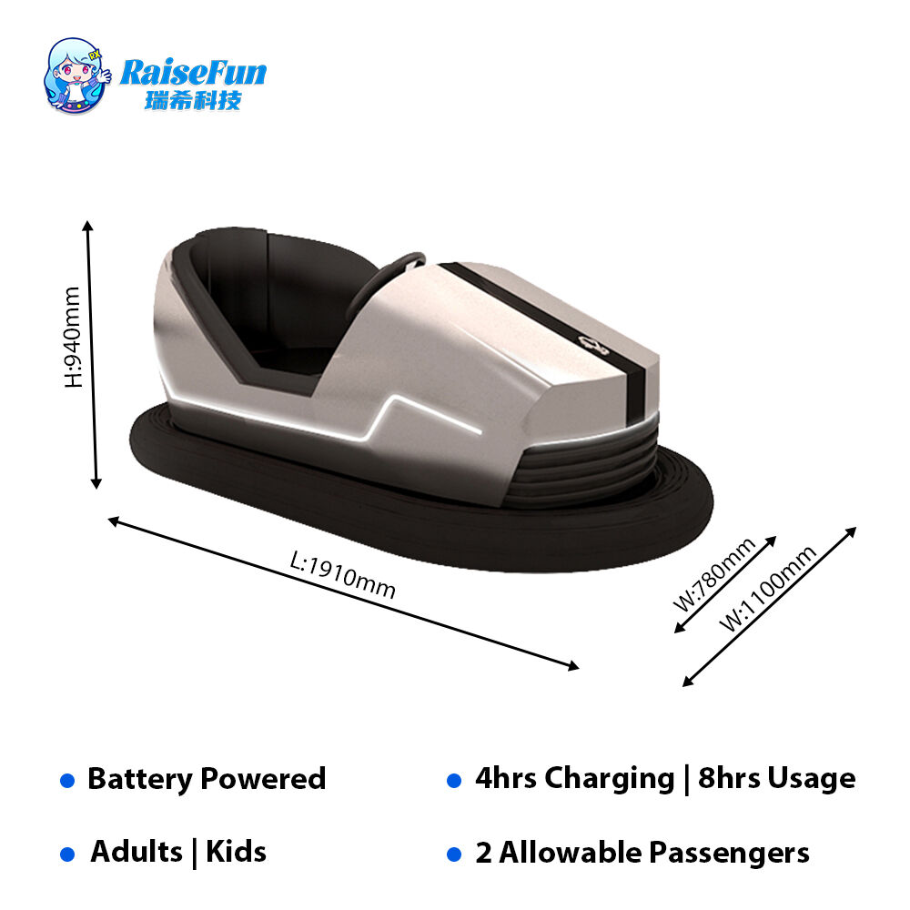The MODEL A 2-seater bumper car offers two options: battery-powered and ground grid-powered, suitable for 2 riders (max load 140kg). It features an inflatable anti-collision chassis + built-in cool ambient lights—safe, crash-resistant, and visually eye-catching. The battery version runs 6-7 hours (4-hour fast charge), while the ground grid version provides stable power; with a speed of 6-10km/h, it’s a fun interactive attraction for playgrounds.