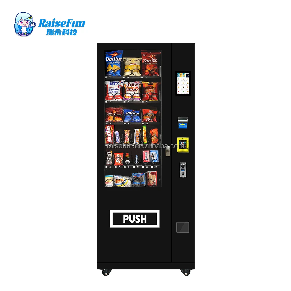 Smart Snack Drink Combo Vending Machine Automatic Touch Screen Card Reader Coin Bill Acceptor Outdoor Large Capacity