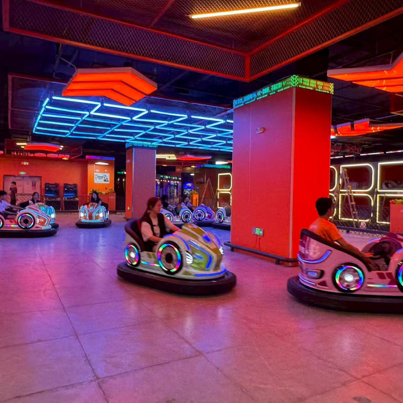Light Shadow elektriska krockbilarna levererar säker krocknöje för familjer och drivs av miljövänliga batterier för användning utomhus och inomhus. Med mjuka krockpuffar och chassit med stötdämpning möjliggörs spännande men milda kollisioner. Dynamiska LED-ljus och glada ljud skapar en spännande atmosfär, perfekt för familjenöjescenter och temaparker.