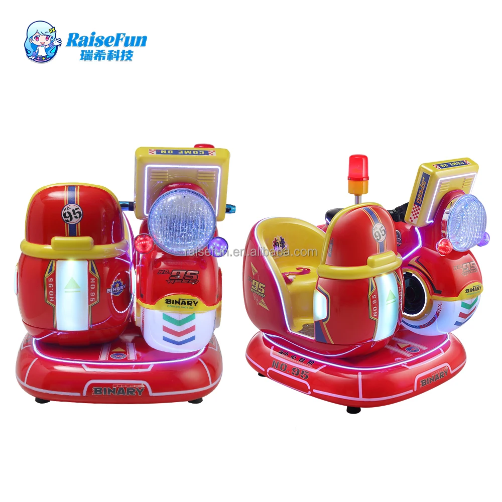 Two Seater Coin Operated 3D Motorcycle Swing Machine With Interactive LCD Screen Lights Music