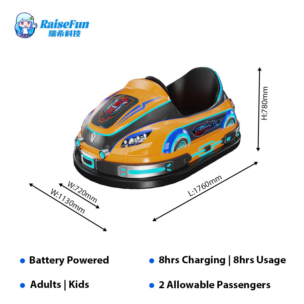 This Bumper Car features a colorful design, supports 2 riders, and comes with a light & audio system plus adjustable-speed driving. It combines safe anti-collision performance with drifting gameplay, making it an interactive fun ride for amusement venues.